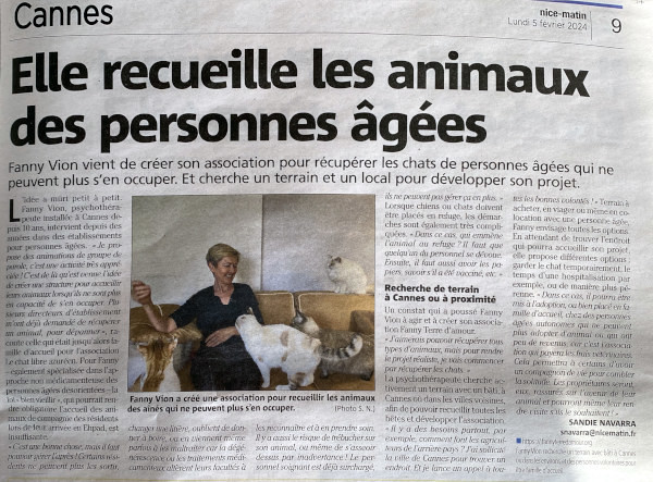 Cette association à but non lucratif a pour objet de prendre le relais des bons soins aux animaux des personnes âgées lorsqu'elles ne peuvent plus s'en occuper.