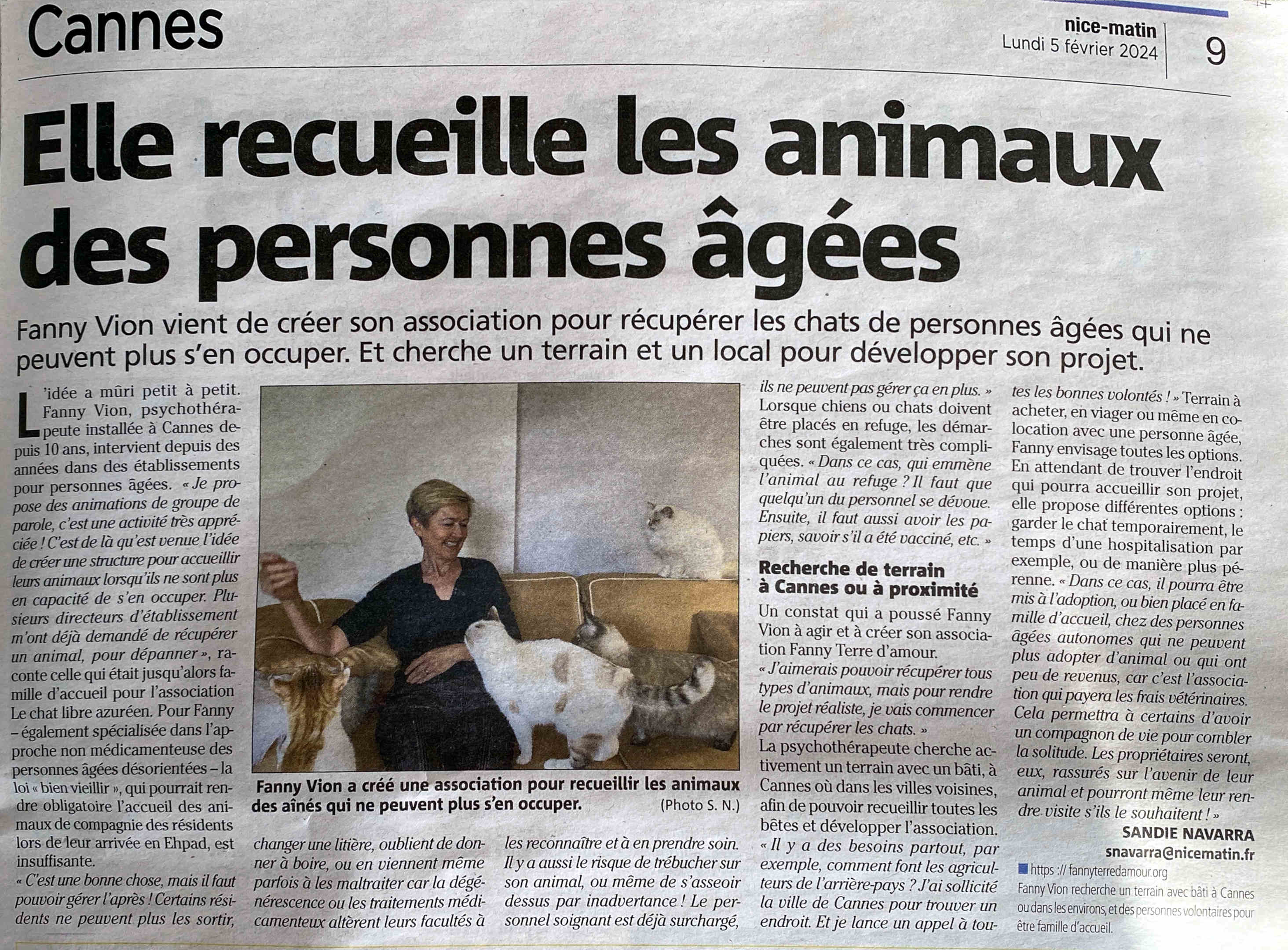 Au fil des années, j’ai donc dû recueillir plusieurs chats. De ces expériences est née l’idée d’ouvrir une structure d’accueil pour les animaux des personnes âgées.